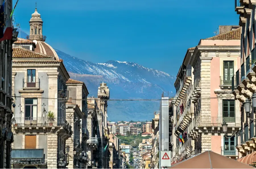 Utsikten i via Etnea, hvor du ser fjellet Etna i bakgrunnen majestetisk, og nesten grunn alene for å besøke Catania.
