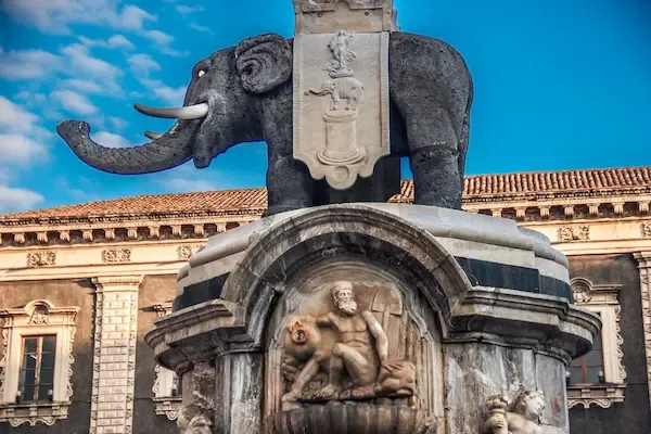 Statuen er laget av lavastein fra Etna og er i dag byens viktigste symbol.
