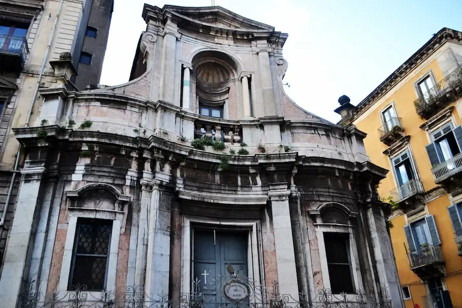 Hvis du ser nøye etter på kirkene i Catania, kan du oppdage noe interessant: Formen på fasaden kan fortelle hvem kirken er viet til. En fasade som buer utover, er ofte knyttet til en mannlig helgen, som Basilica della Collegiata.