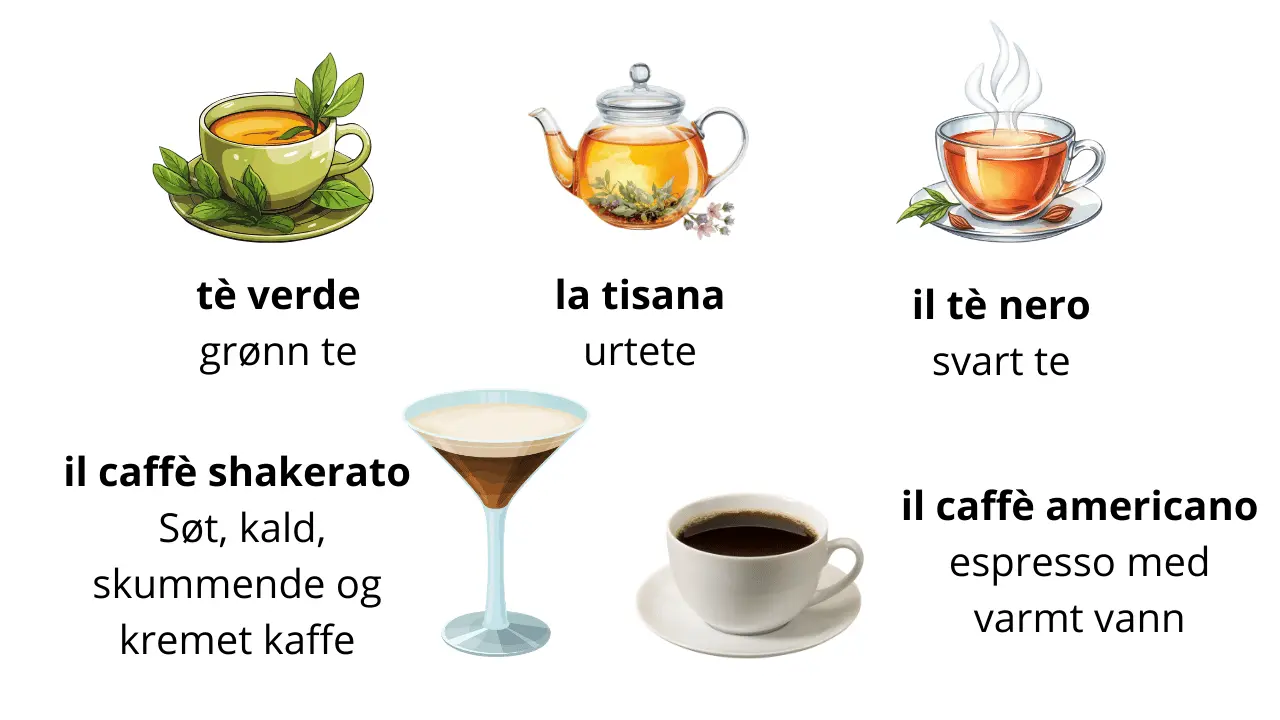 Nyttige enkle ord og setninger for å bestille varme drikker i Italia
