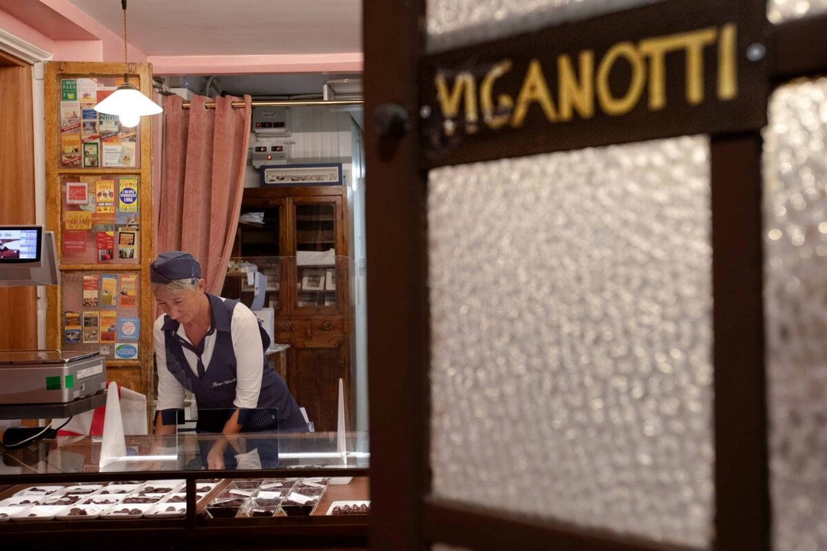 Er en sjokoladefabrikk som lager sjokolade, konfekt og andre produkter. Her står genoveserne gjerne i kø mens de venter på sin lille pakke, viklet inn i blått papir.