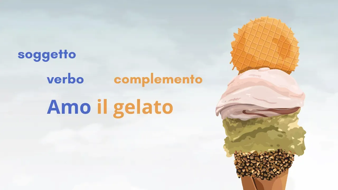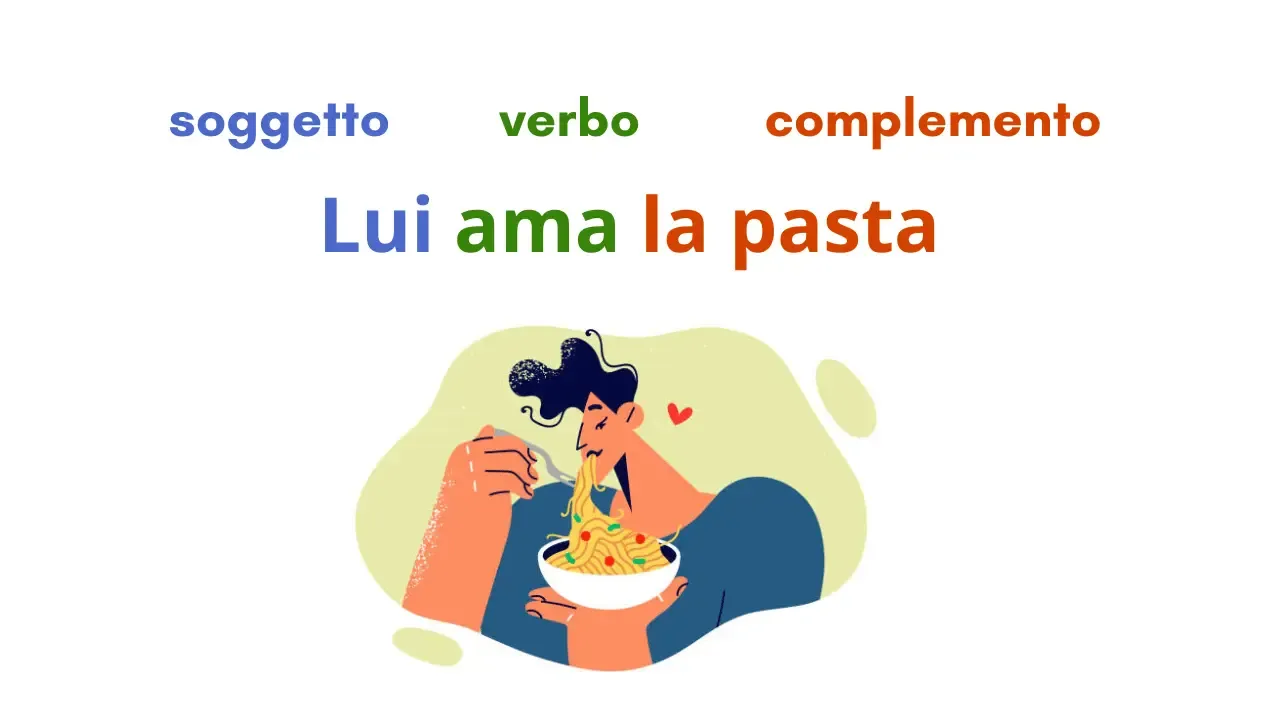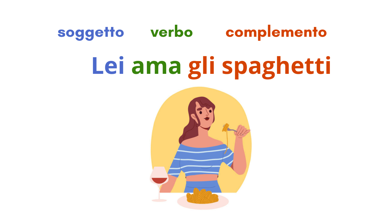 Generelt kan vi si at en italiensk setning er bygd opp av tre deler som du ser over: