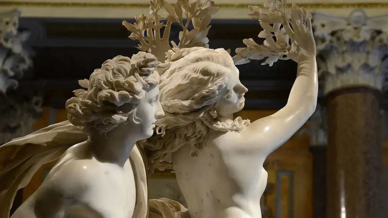 Kunstverket over er skapt av Gian Lorenzo Bernini â Apollo e Dafne (1623â1625), og det kan du se i Galleria Borghese, Roma.