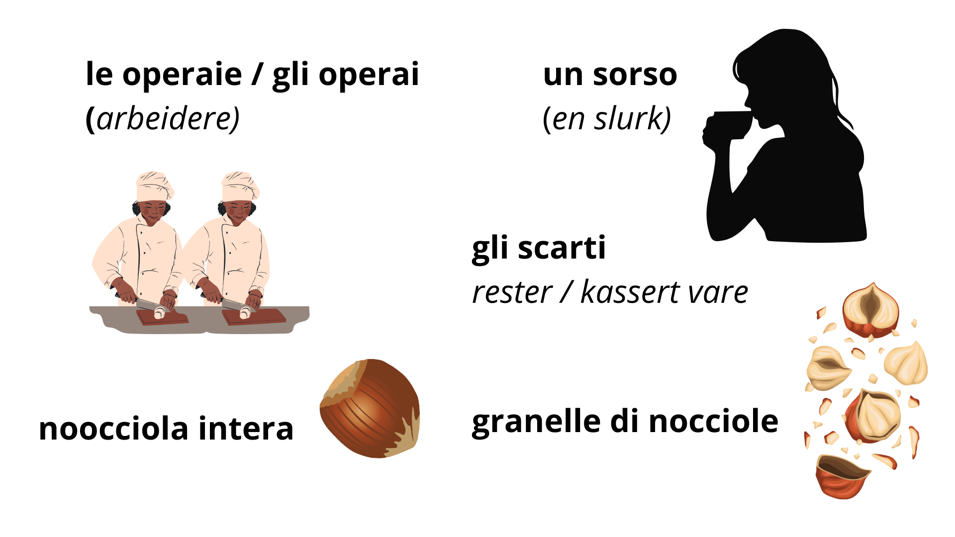 «Bacio ble oppfunnet av en helt spesiell kvinne: Luisa Spagnoli. Har du lyst på en kaffe? Da kan vi spise Baci og jeg kan fortelle deg historien.»